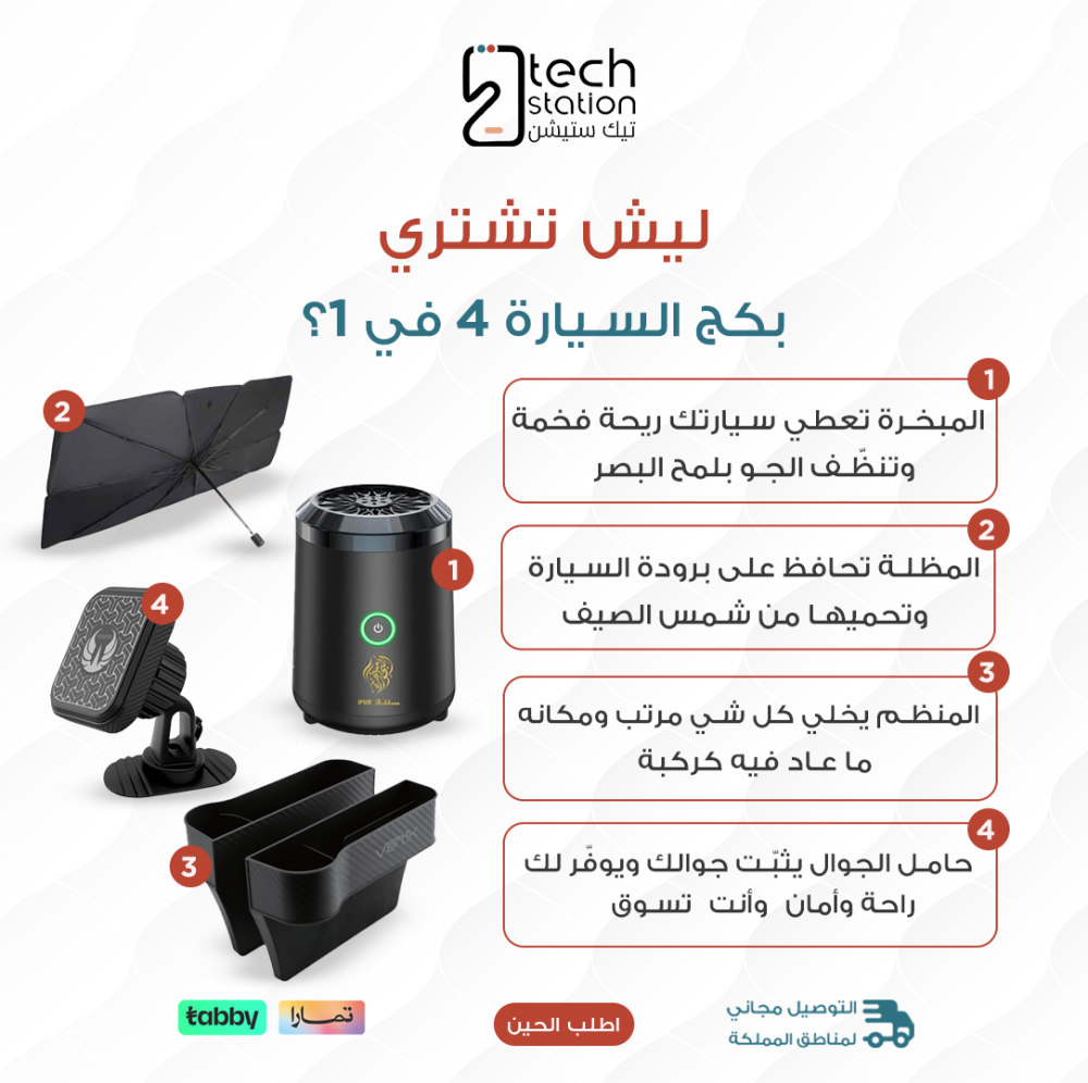 بكج السيارة 4 في 1 – كل احتياجاتك في مشوارك بسعر 177ريال بدلامن 256 ريال.