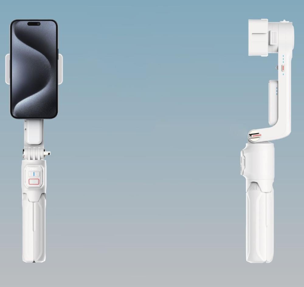 - حامل ثلاثي القوائم مدمج: تحتوي العصا على ثلاثة أرجل قابلة للفتح، مما يسمح باستخدامها كحامل ثلاثي القوائم للتصوير الثابت.