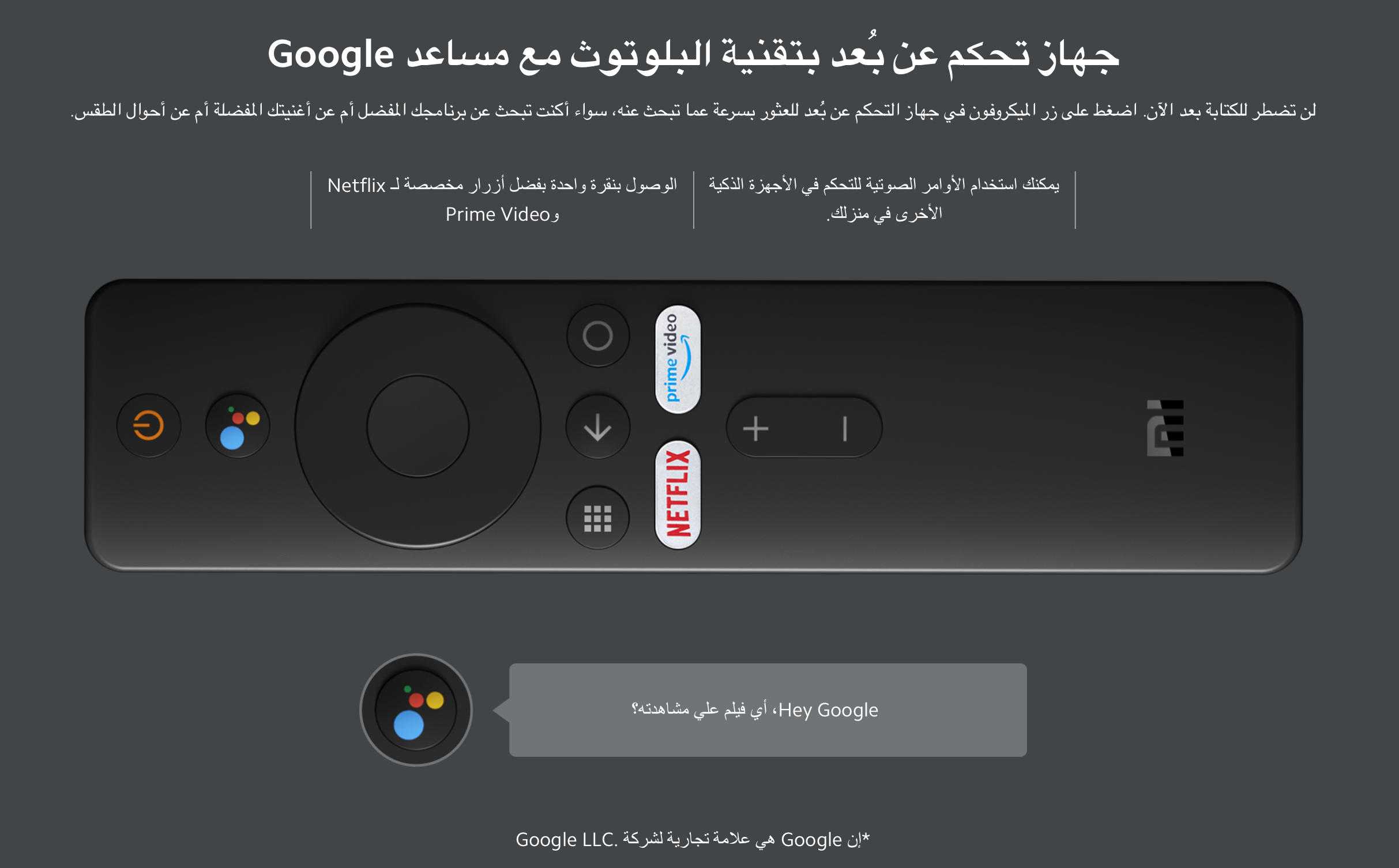 - ريموت ذكي مع مساعد Google: تحكم بالصوت وابحث عن المحتوى بسهولة من خلال الأوامر الصوتية.