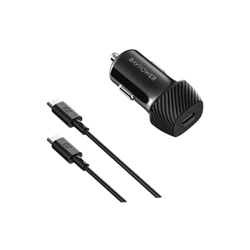 راف باور | شاحن سيارة تايب سي 20 واط مع كيبل تايب سي إلى تايب سي