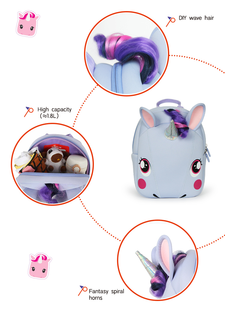 - تصميم فريد ولافت: حقيبة على شكل وحيد القرن (يونيكورن) بتفاصيل لطيفة وألوان جذابة، تجعلها مفضلة لدى الأطفال.